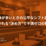 ルールを先に示し、公開し、優先順位を共有する。その3つを整えた店ほど、シフトの空気は静かに安定します。